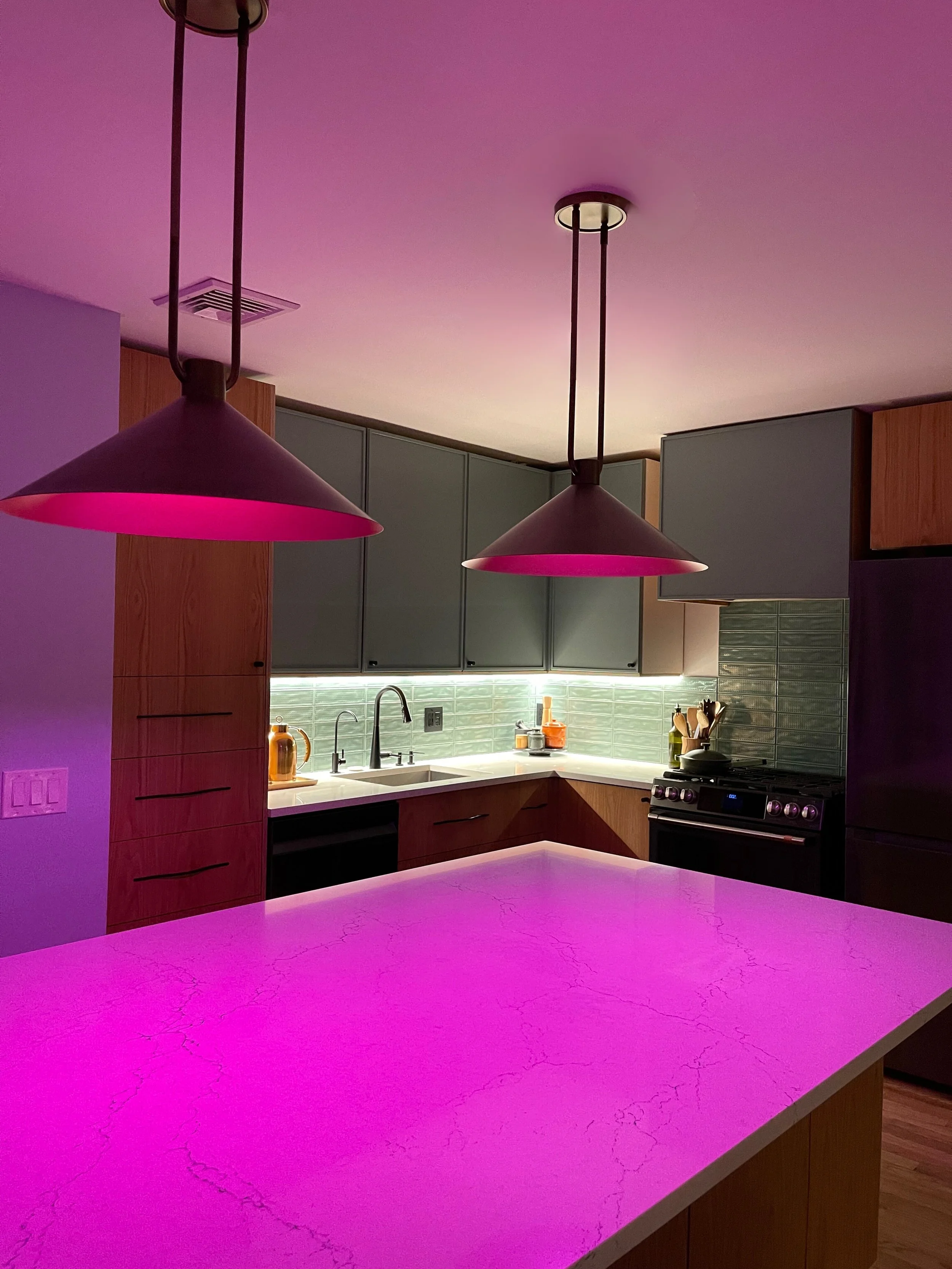 We chose the Cync Full Color Reveal HD+ Smart LED bulbs, which connect with our Alexa. Soleil is a big fan and is performing concerts to play against the light show (you can set your light show, too)! And that is the best part about these over-the-counter lights - they shine light on a space for us to laugh, create, and enjoy each other.